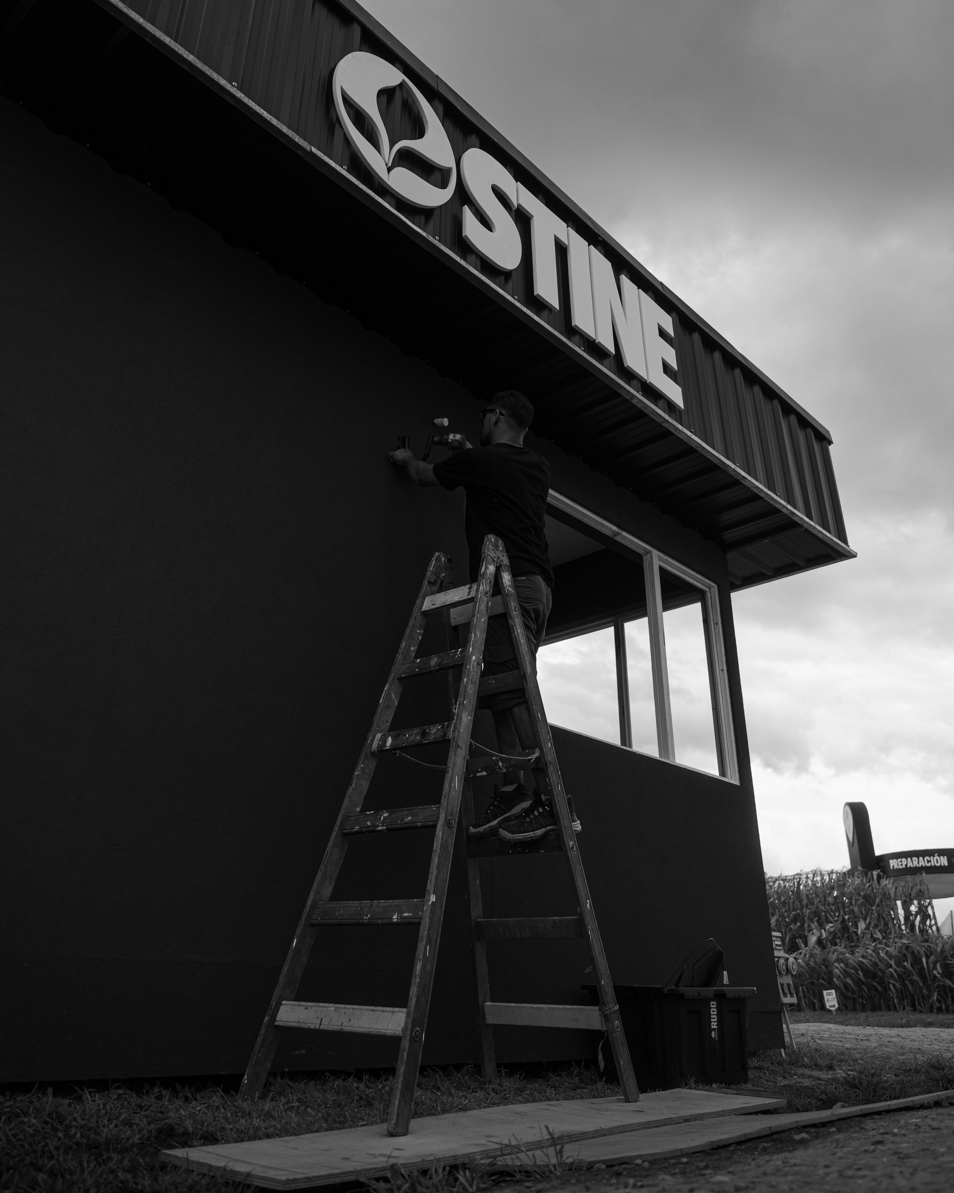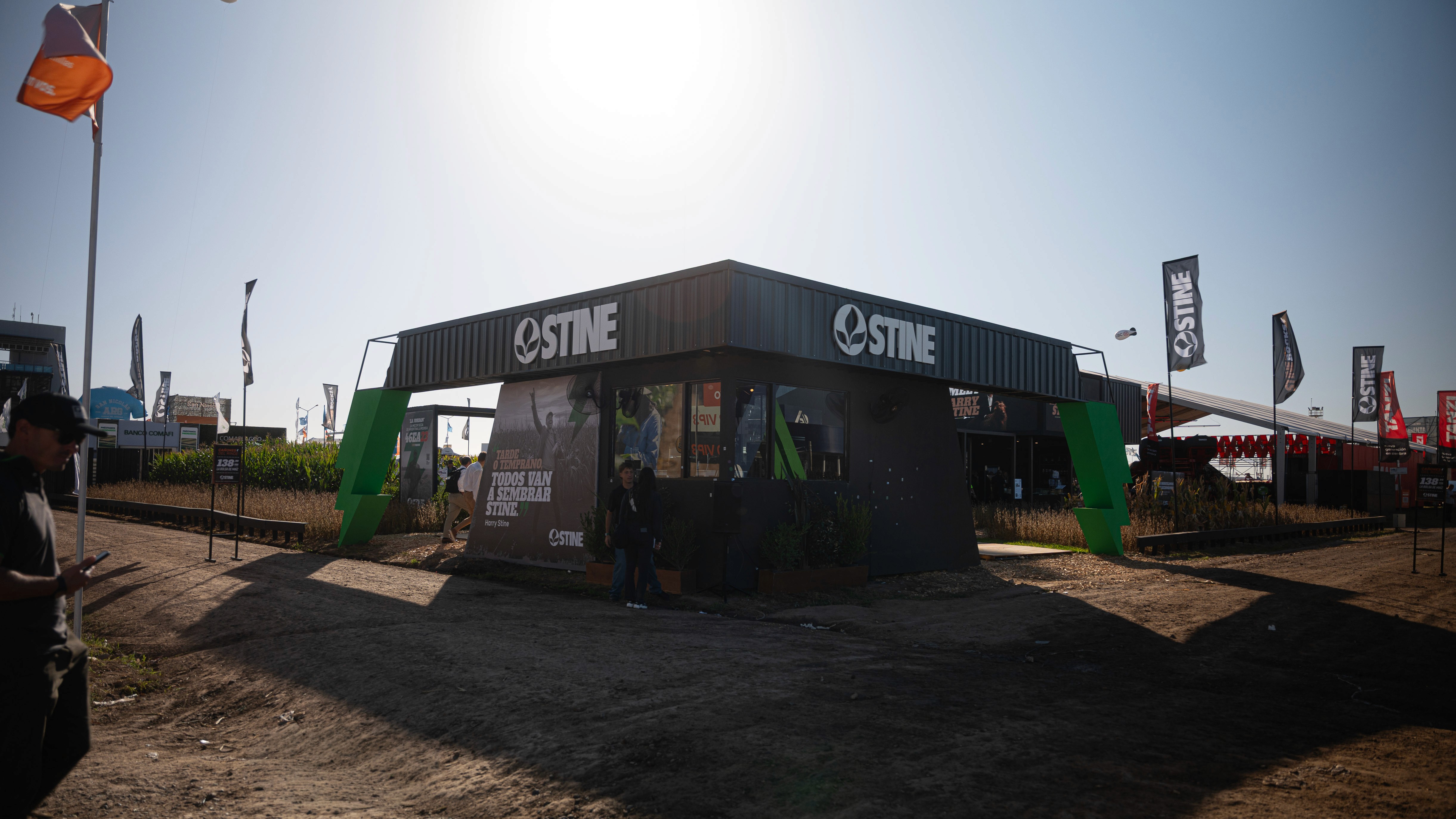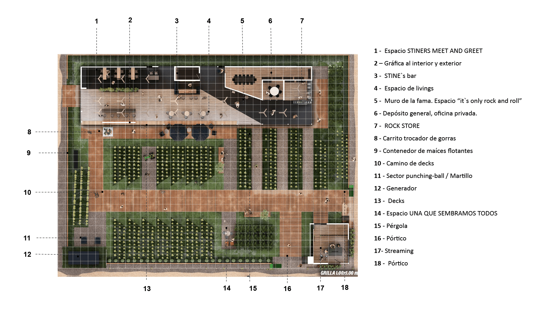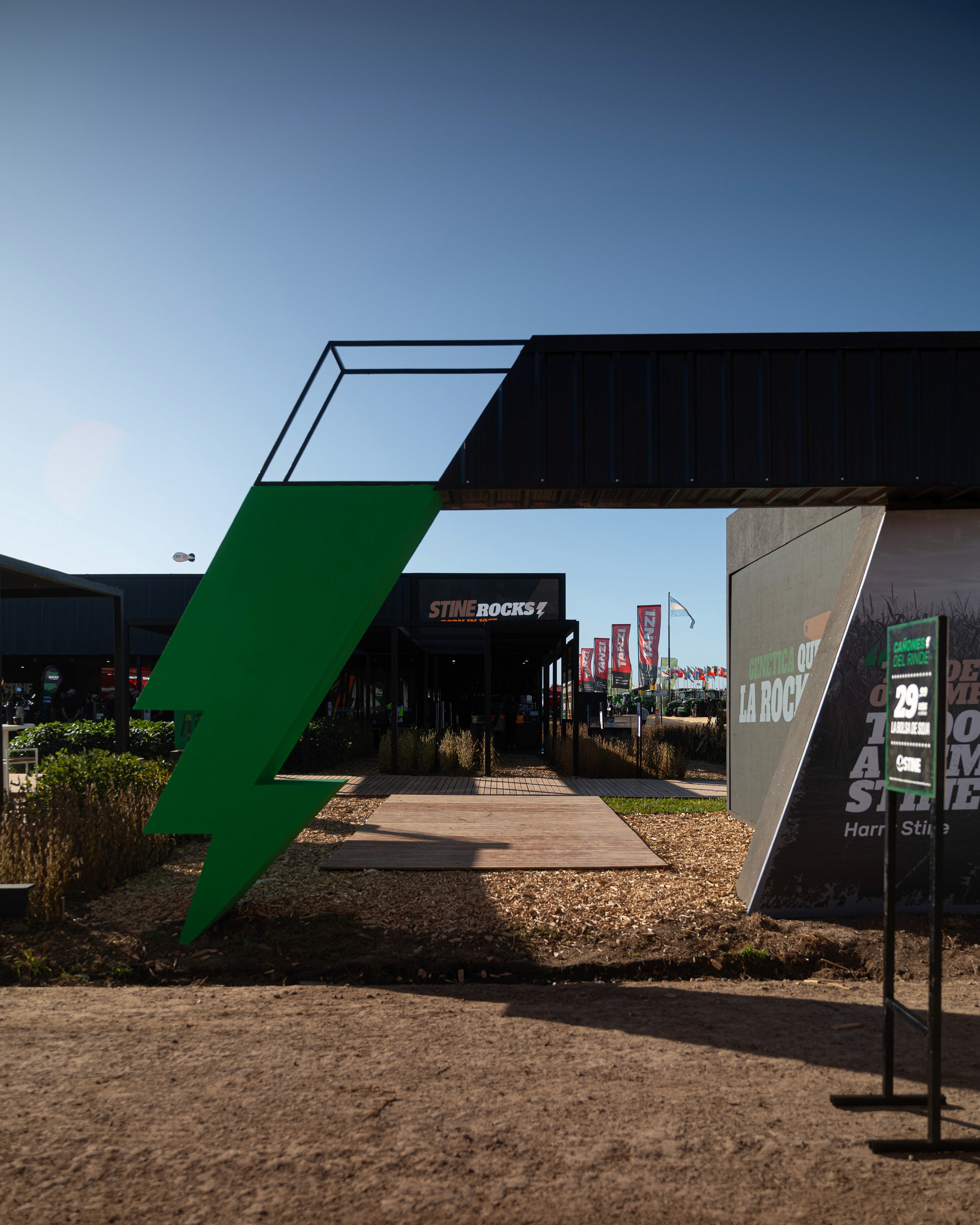 a propuesta desarrollada para el stand de STINE se organiza a partir de una idea rectora clara: La concepción de un volumen simple, contundente y de fuerte presencia espacial. Se prioriza una implantación clara, que facilite la lectura de los accesos y concentre el impacto visual en sectores estratégicos, reforzando la identidad de marca. El diseño se estructura en torno a funciones bien definidas que articulan la experiencia del usuario: • Sector STINERS: espacio principal de encuentro y ventas, pensado como punto de contacto directo con clientes y visitantes. • Sector bar: área diseñada para reforzar la experiencia de marca, promoviendo la permanencia, el intercambio y un vínculo más distendido. • Sector oficina / depósito: espacio de apoyo para el equipo, con la capacidad y condiciones necesarias para un uso cómodo y eficiente. • Sector de merchandising: destinado a la exhibición y entrega de productos identificatorios de la marca. • Muro de la fama: concebido como espacio de ingreso y elemento narrativo del stand, donde se expresa el concepto central de la propuesta: “STINE ROCKS!”, reforzando el carácter innovador y protagonista de la marca. La propuesta mantiene una estética profesional y joven, con energía y potencia visual, alineada con los valores y el espíritu de STINE, logrando un stand que no solo comunica, sino que genera impacto y experiencia.