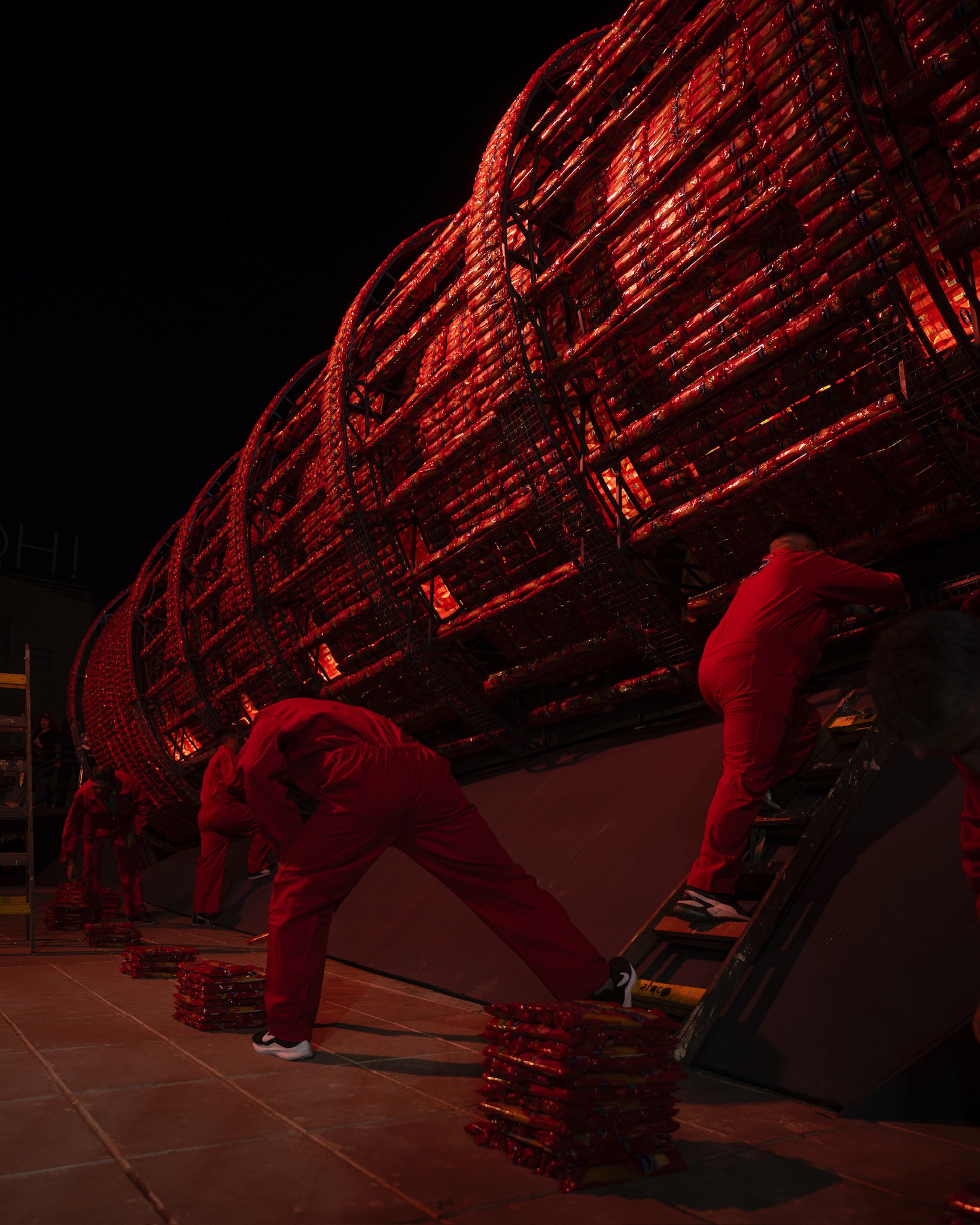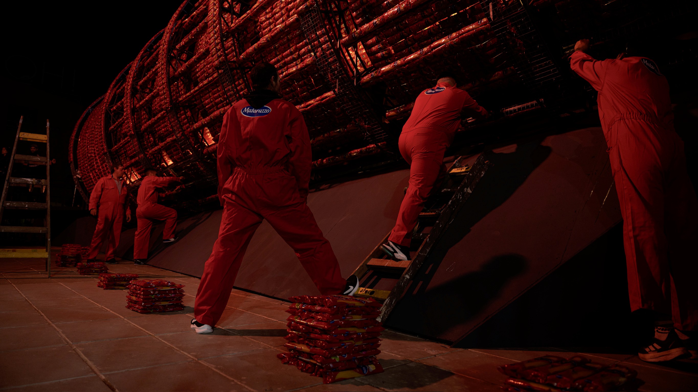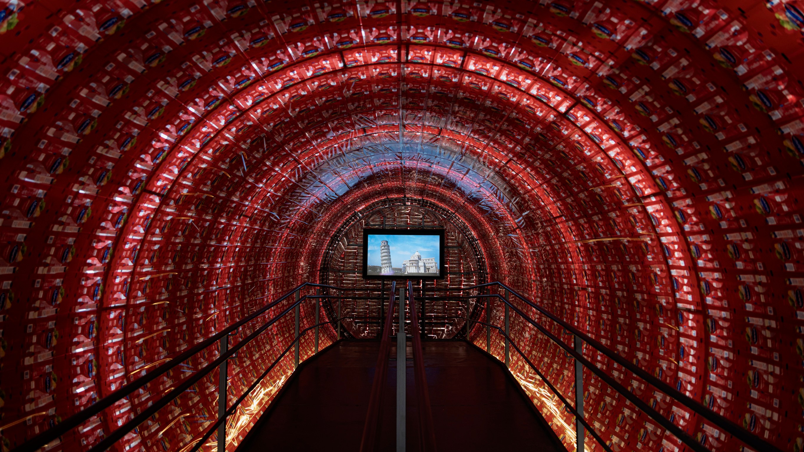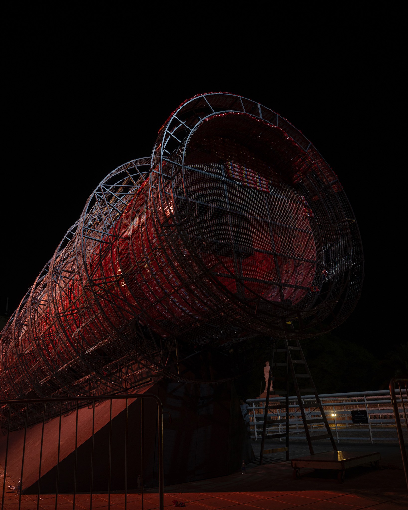 ”La torre de Pisa de Spaghettis retoma la reflexión sobre “la caída de los mitos universales” concepto que Minujin desarrolla desde los años sesenta para desestabilizar a aquello que se considera intocable o monumental. La artista traslada ahora el imaginario gastronómico a una de las arquitecturas más reconocibles del mundo, desplazando el peso de la historia hacia el territorio del juego. Realizada a partir de un material tan cotidiano y accesible como los espaguetis, la obra propone un cruce entre tradición e ironía, entre memoria cultural y disfrute colectivo. Lo grandioso se vuelve cercano y lo cotidiano asume una escala extraordinaria. La instalación, de casi 20 metros de altura, invita a ser recorrioda desde el interior a traves de una rampa accesible que recupera la dimensión participativa clave en la obra de Minujin. Como en toda su producción, Minujín convoca a vivir en arte como un acto de encuentro social: un Espacio donde el humor y la imaginación se convierten en un ejercicio lúdico de libertad”.