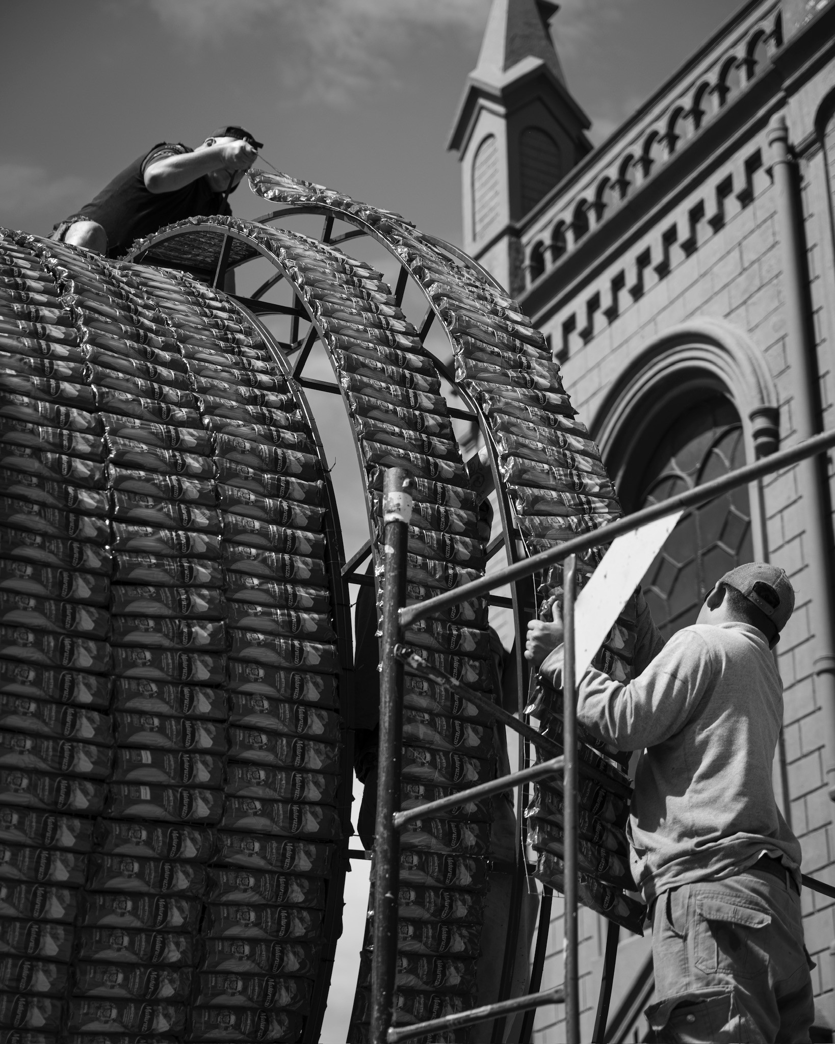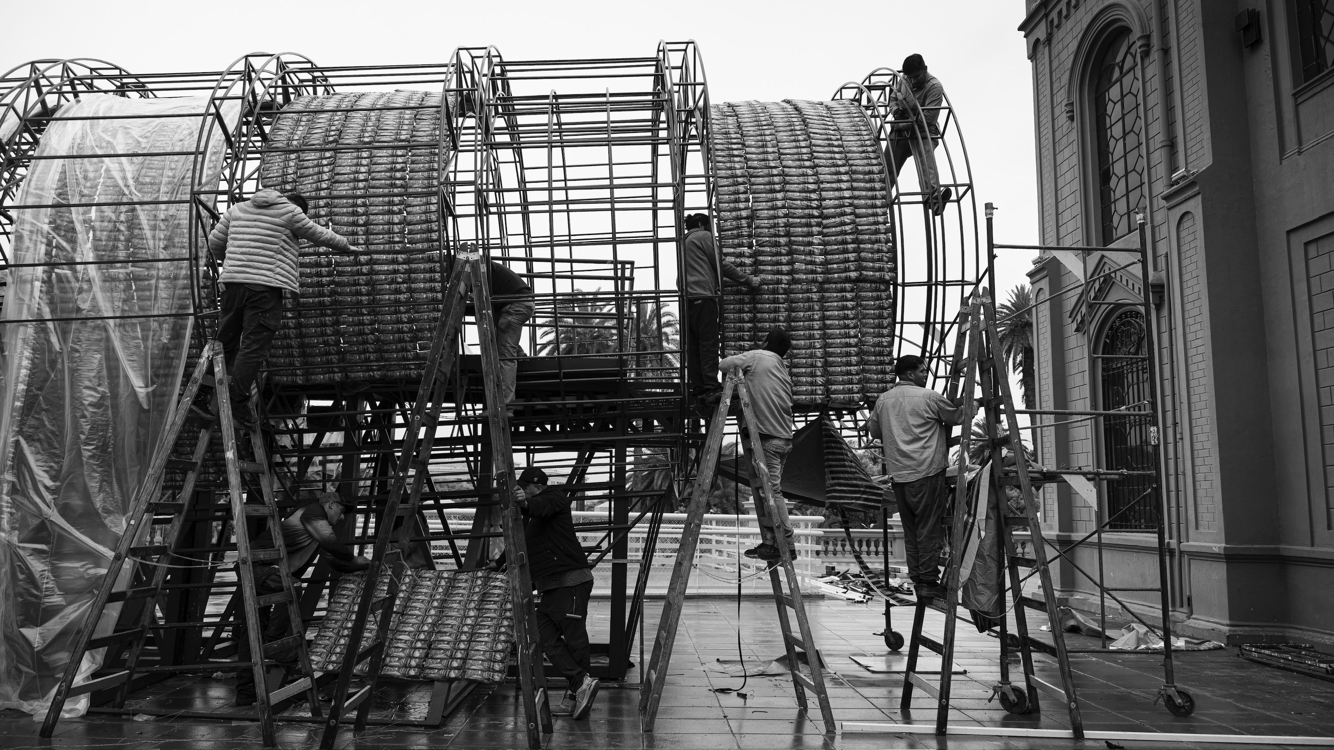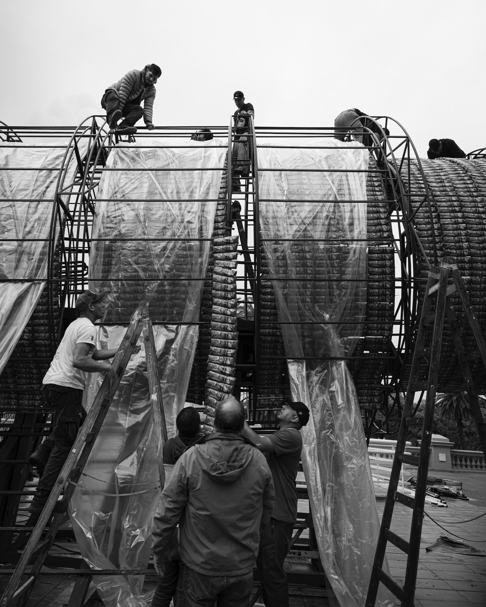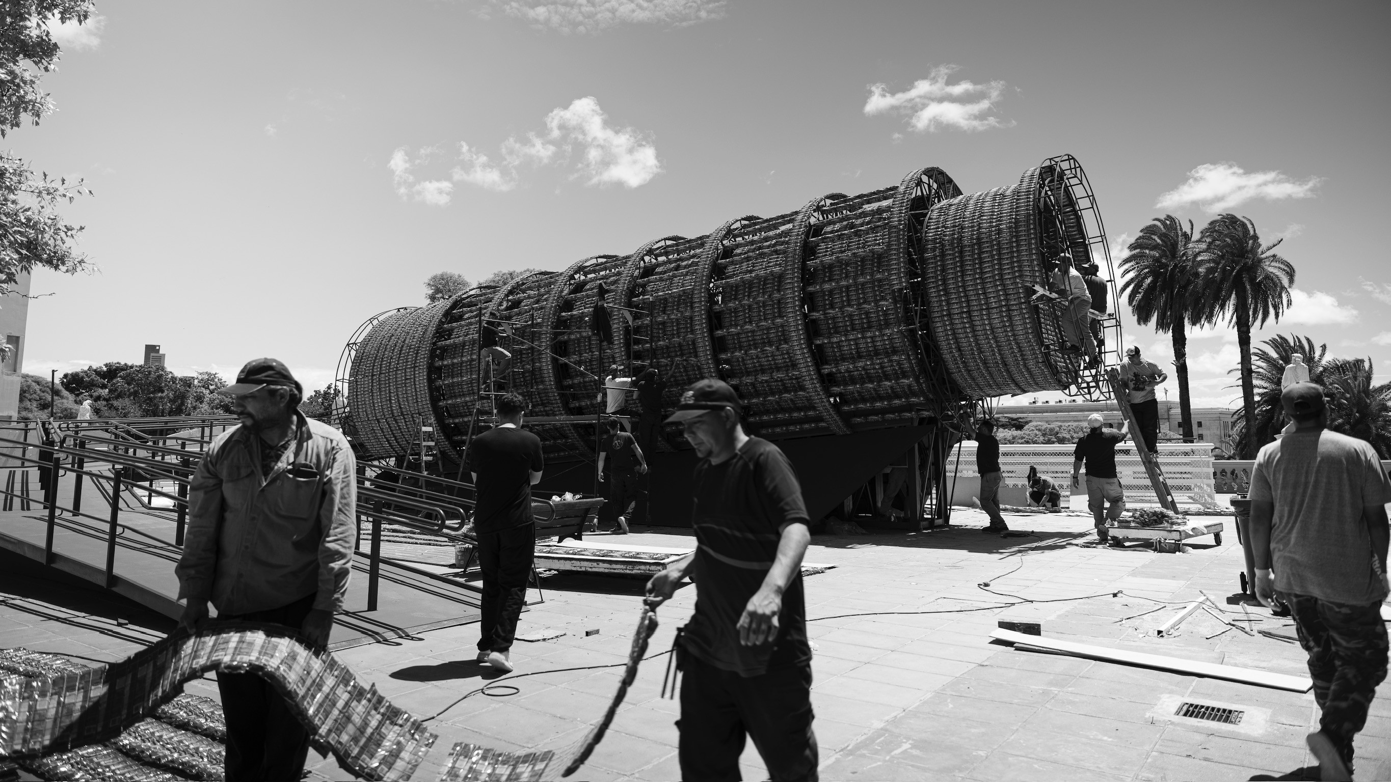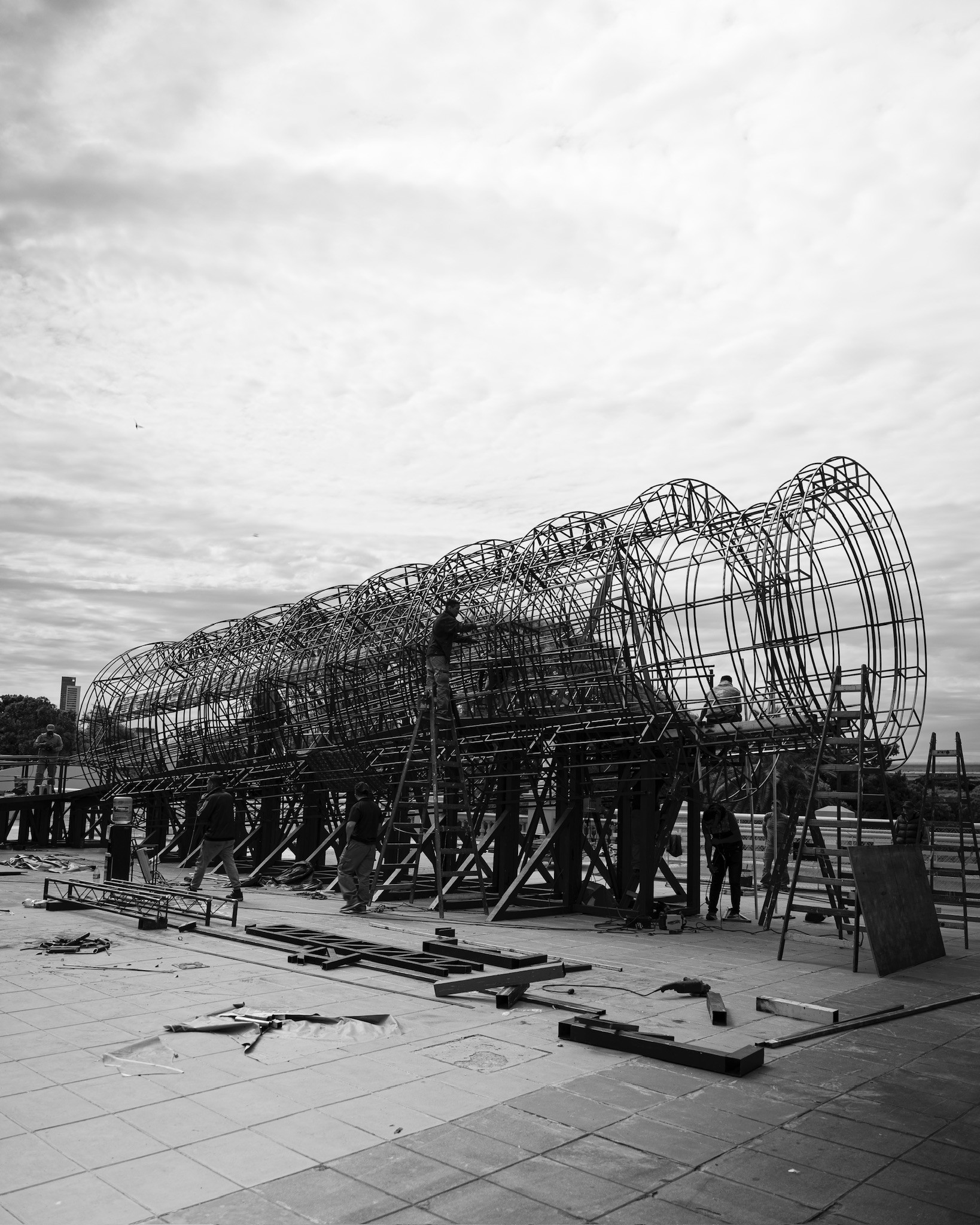”La torre de Pisa de Spaghettis retoma la reflexión sobre “la caída de los mitos universales” concepto que Minujin desarrolla desde los años sesenta para desestabilizar a aquello que se considera intocable o monumental. La artista traslada ahora el imaginario gastronómico a una de las arquitecturas más reconocibles del mundo, desplazando el peso de la historia hacia el territorio del juego. Realizada a partir de un material tan cotidiano y accesible como los espaguetis, la obra propone un cruce entre tradición e ironía, entre memoria cultural y disfrute colectivo. Lo grandioso se vuelve cercano y lo cotidiano asume una escala extraordinaria. La instalación, de casi 20 metros de altura, invita a ser recorrioda desde el interior a traves de una rampa accesible que recupera la dimensión participativa clave en la obra de Minujin. Como en toda su producción, Minujín convoca a vivir en arte como un acto de encuentro social: un Espacio donde el humor y la imaginación se convierten en un ejercicio lúdico de libertad”.