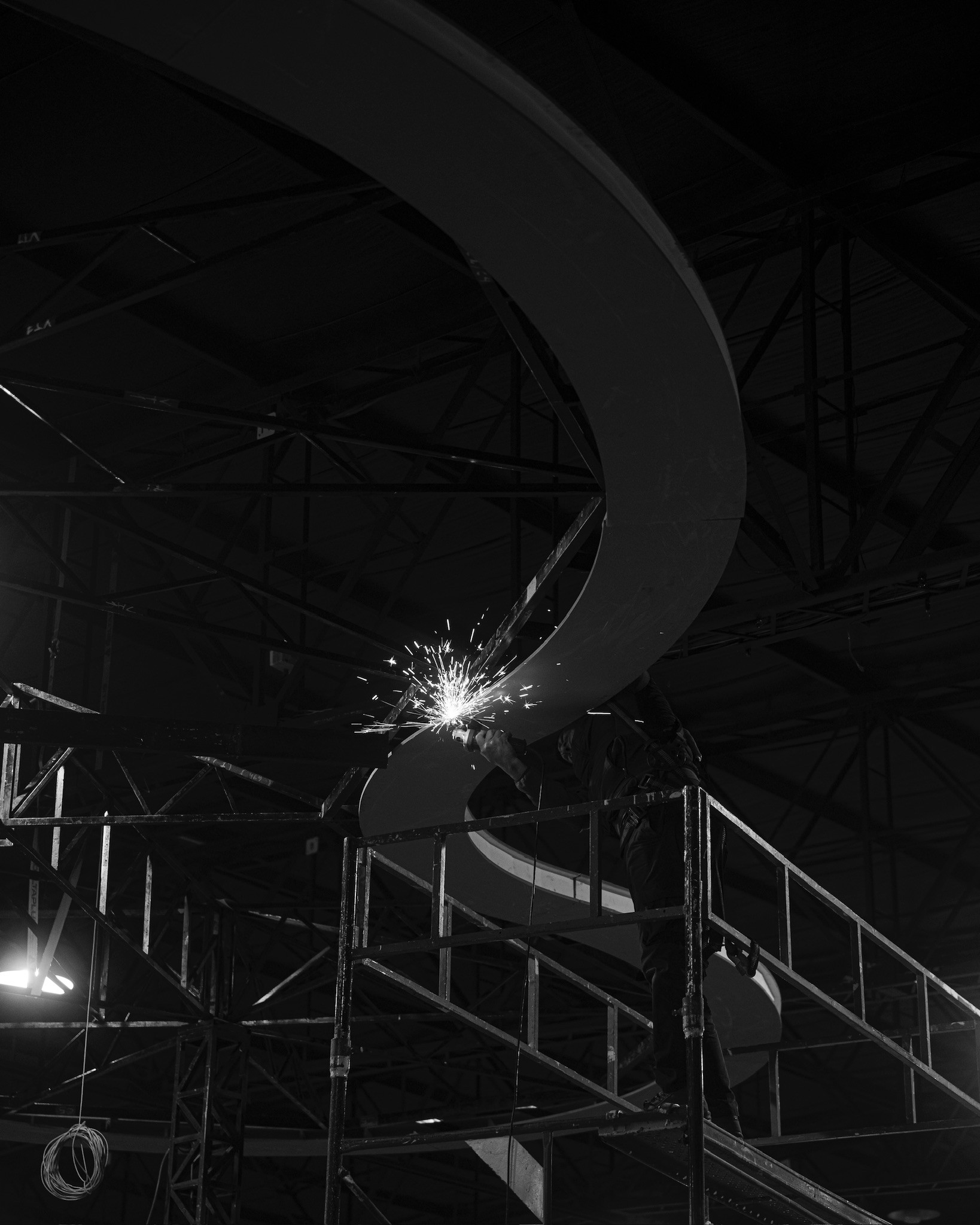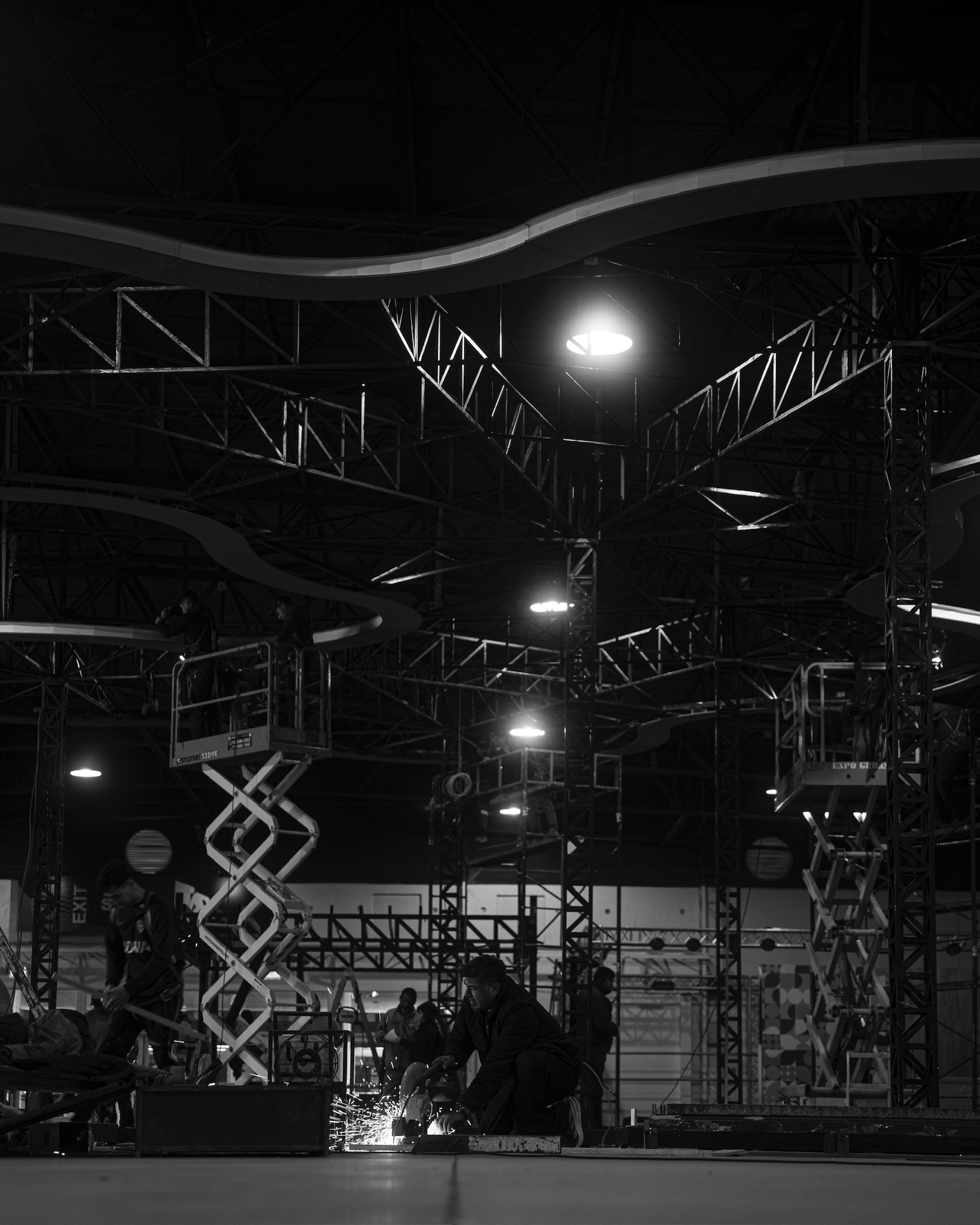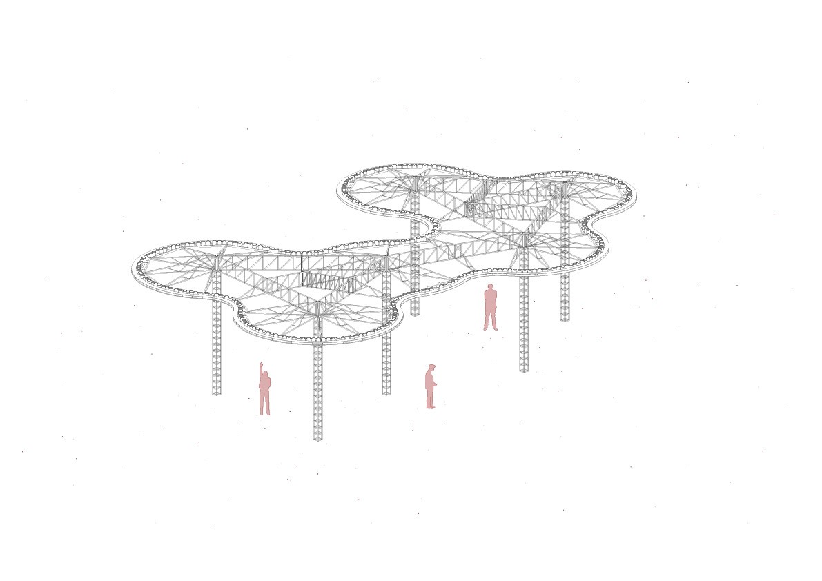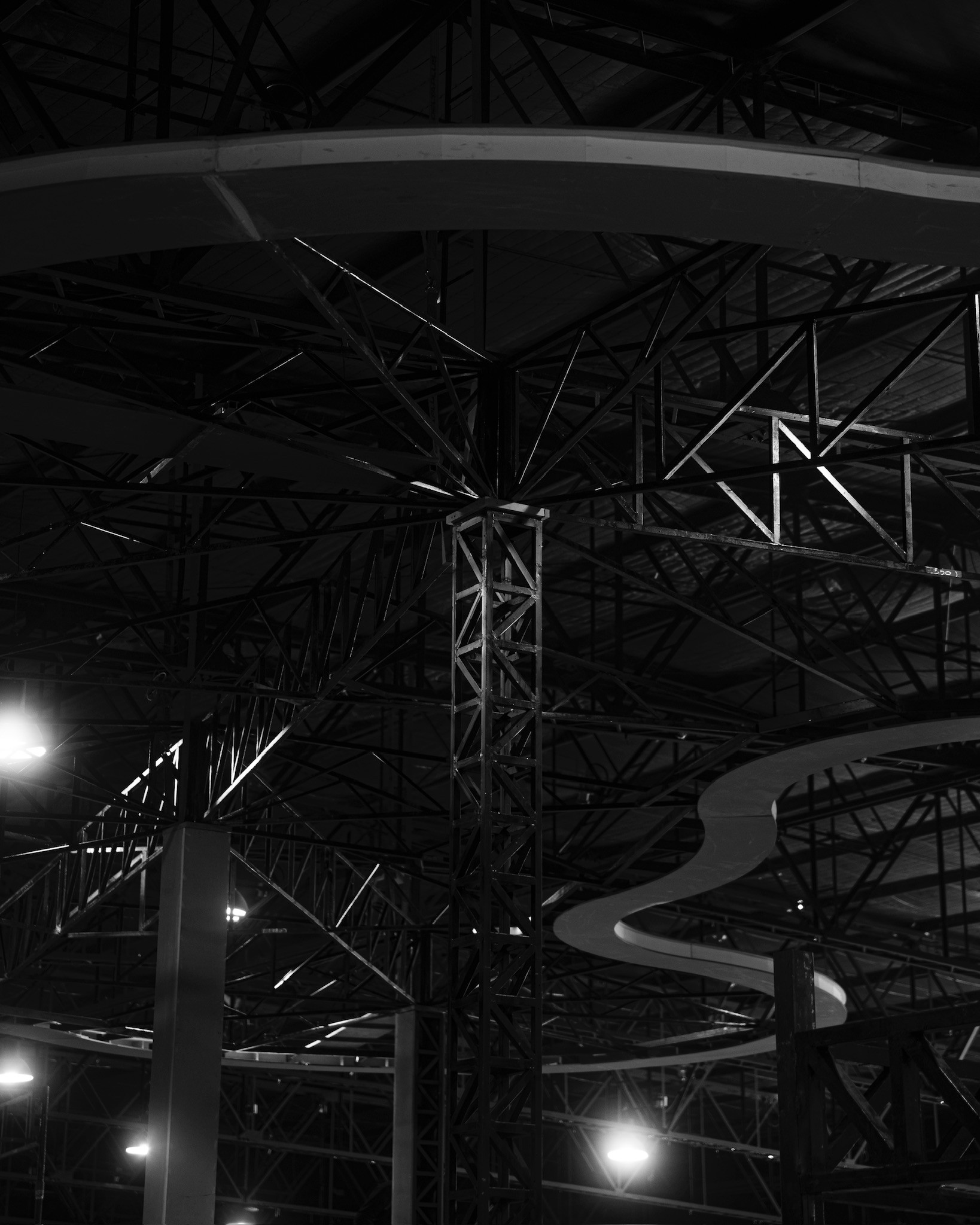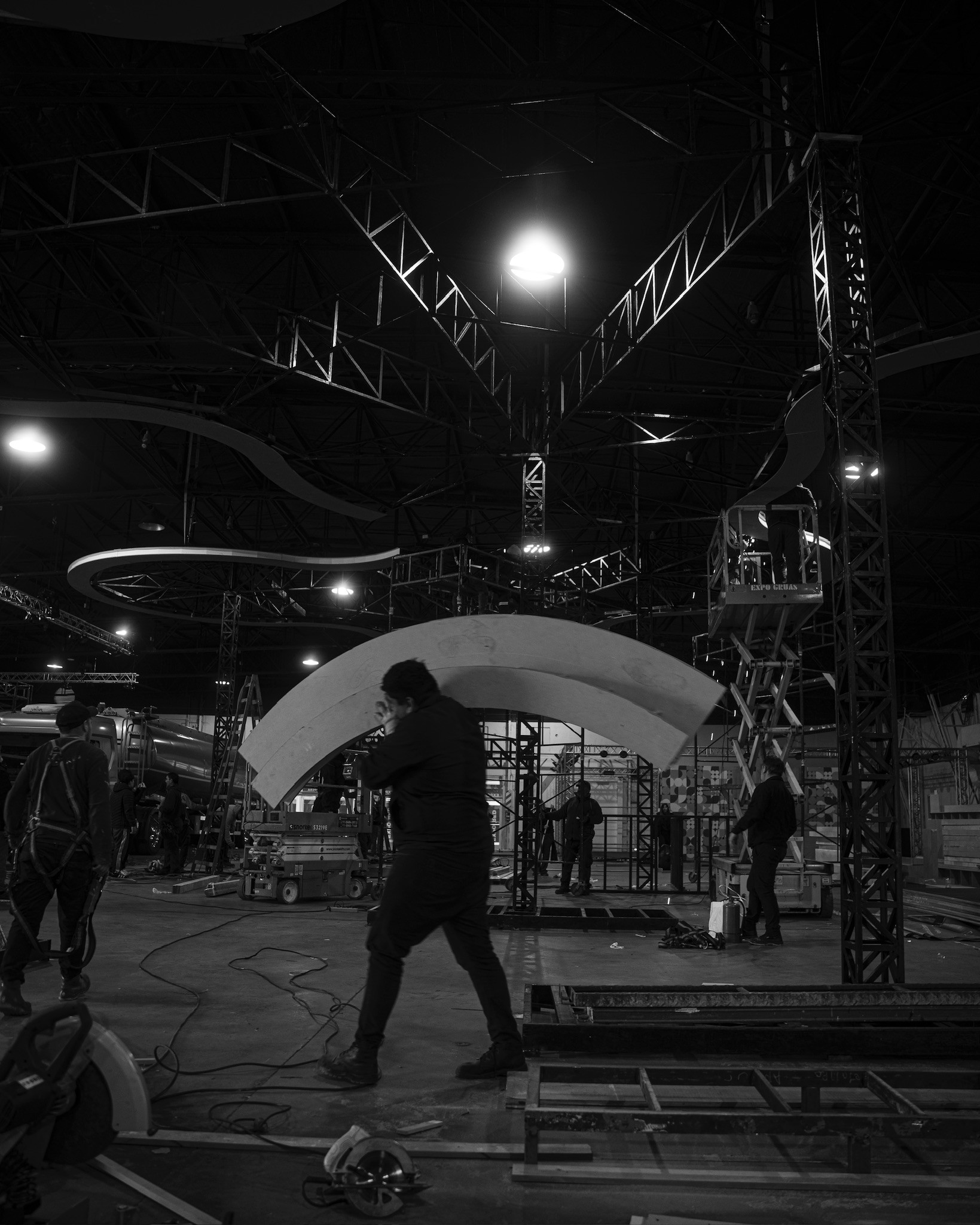 Para el desarrollo de este stand, tomamos como referencia la primera “YPF del futuro”, un proyecto existente ubicado en Figueroa Alcorta y Echeverría, en la Ciudad de Buenos Aires. A partir de su estudio, analizamos en detalle tanto el sistema constructivo como el planteo arquitectónico, con el objetivo de realizar una síntesis que transmitiera el espíritu innovador y la identidad de dicha estación. En función de las diferencias constructivas posibles propias de un montaje, diseñamos un sistema estructural adaptado que nos permitiera replicar el característico techo de hormigón armado mediante una estructura metálica autoportante, liviana y prearmada, pensada para poder realizar el montaje completo en tan solo 3 días.